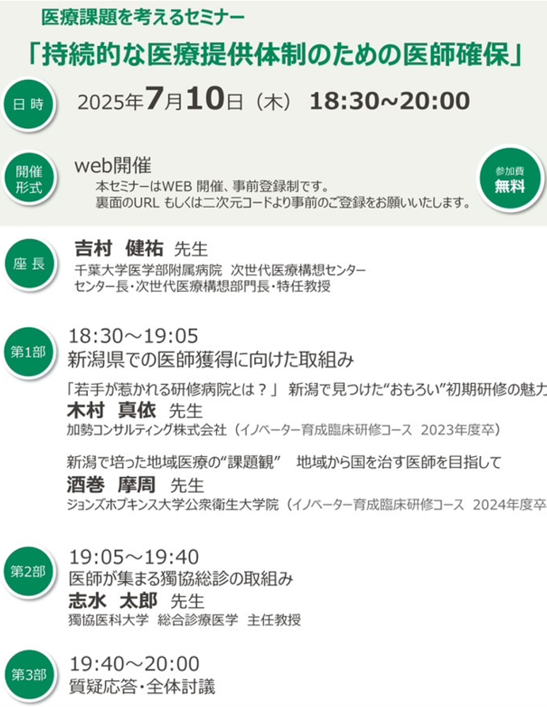 弊社 所属の医師メンバーが、医療機器メーカー主催のセミナーにて、新潟県での医師確保に関して登壇させて頂きました 2025年7月10日 最終更新日時 : 2026年1月16日 kase.co.com@gmail.com