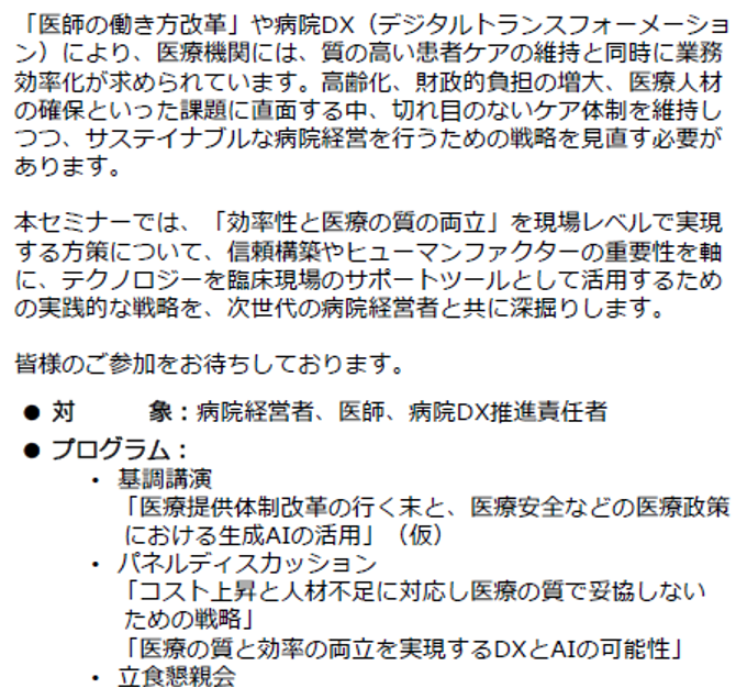弊社 所属の医師メンバーが、医療関連のメディア主催の講演会にて、医師の働き方改革に関して登壇させて頂きました 2025年7月11日 最終更新日時 : 2026年1月16日 kase.co.com@gmail.com