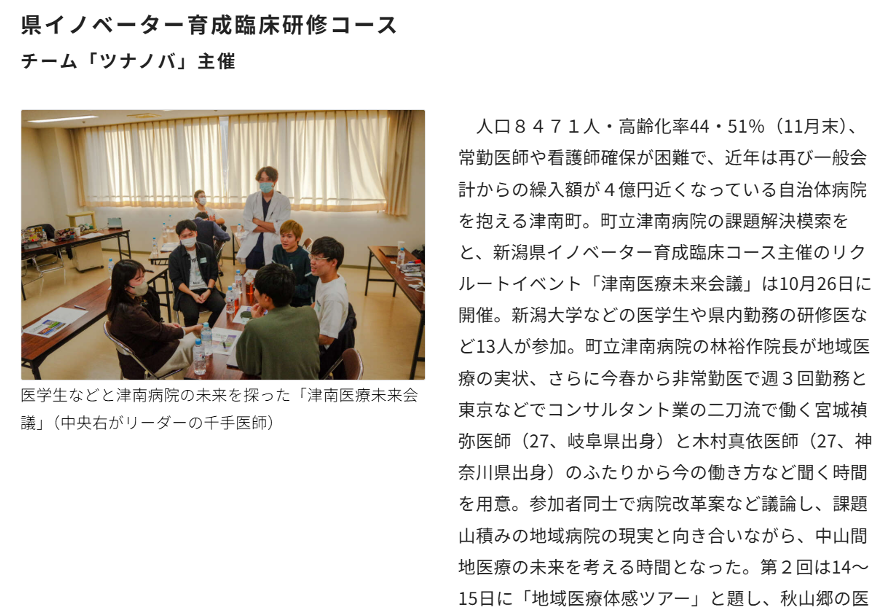 弊社代表加勢の監修の下、ツナノバ(現 津南病院医師 千手先生がリーダーを務める)の活動として、