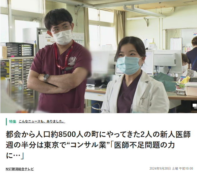 弊社所属のメンバーが各種メディアに取り上げられました 2024年9月28日 最終更新日時 : 2026年1月16日 kase.co.com@gmail.com 都会から人口約8500人の町にやってきた2人の新人医師 週の半分は東京で“コンサル業”「医師不足問題の力に…」|FNNプライムオンライン